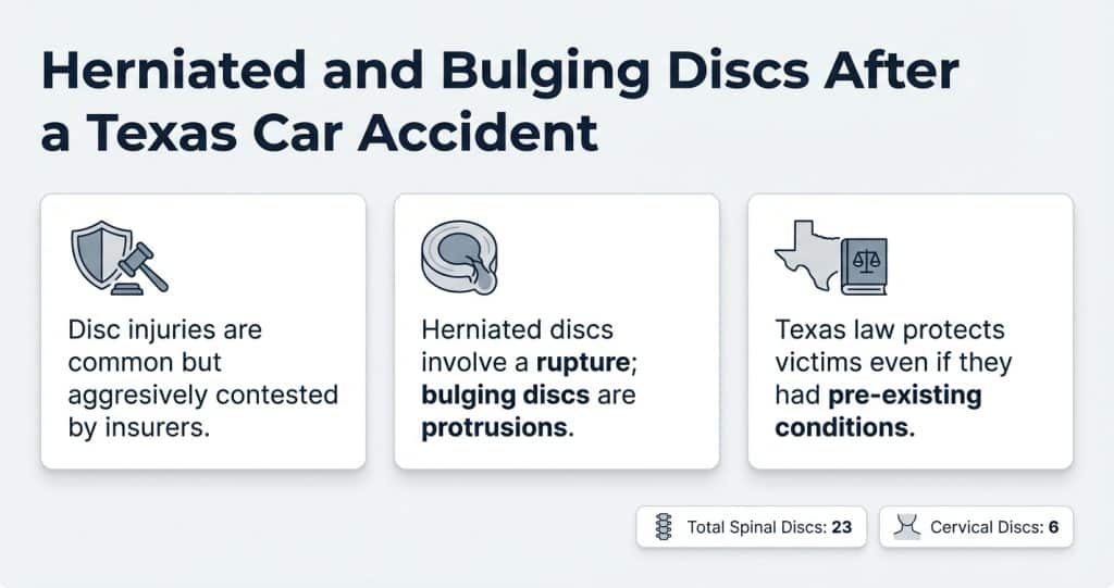 Fighting back requires understanding what disc injuries really are, how car accidents cause them, how they are diagnosed and treated, and how to prove they deserve fair compensation under Texas law.