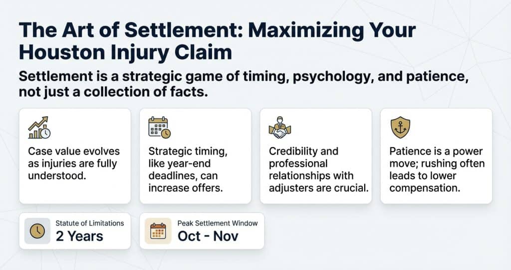The Art of Settlement: Why Timing, Strategy, and Patience Matter in Your Houston Injury Claim