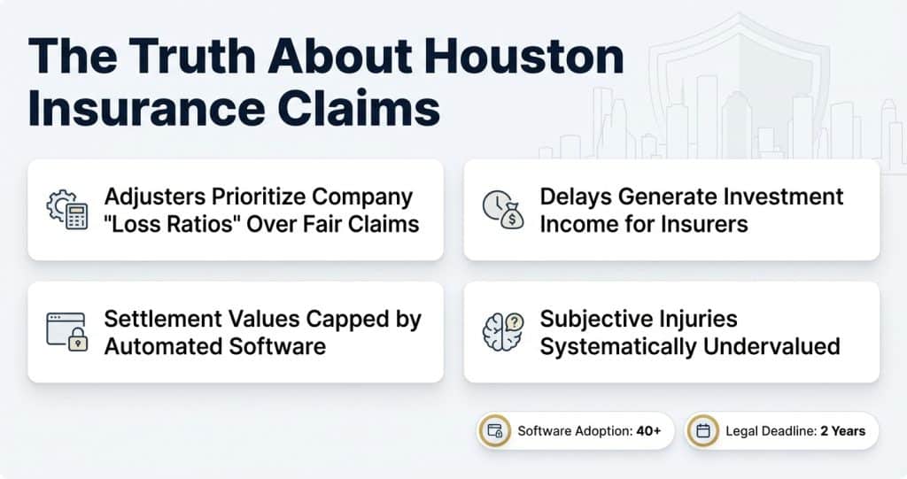 When I started practicing personal injury law in Houston, I assumed insurance companies operated like most businesses—trying to do right by their customers while also making a profit. What I discovered through years of negotiations, depositions, and trials is a system designed from the ground up to pay you as little as possible, as slowly as possible.